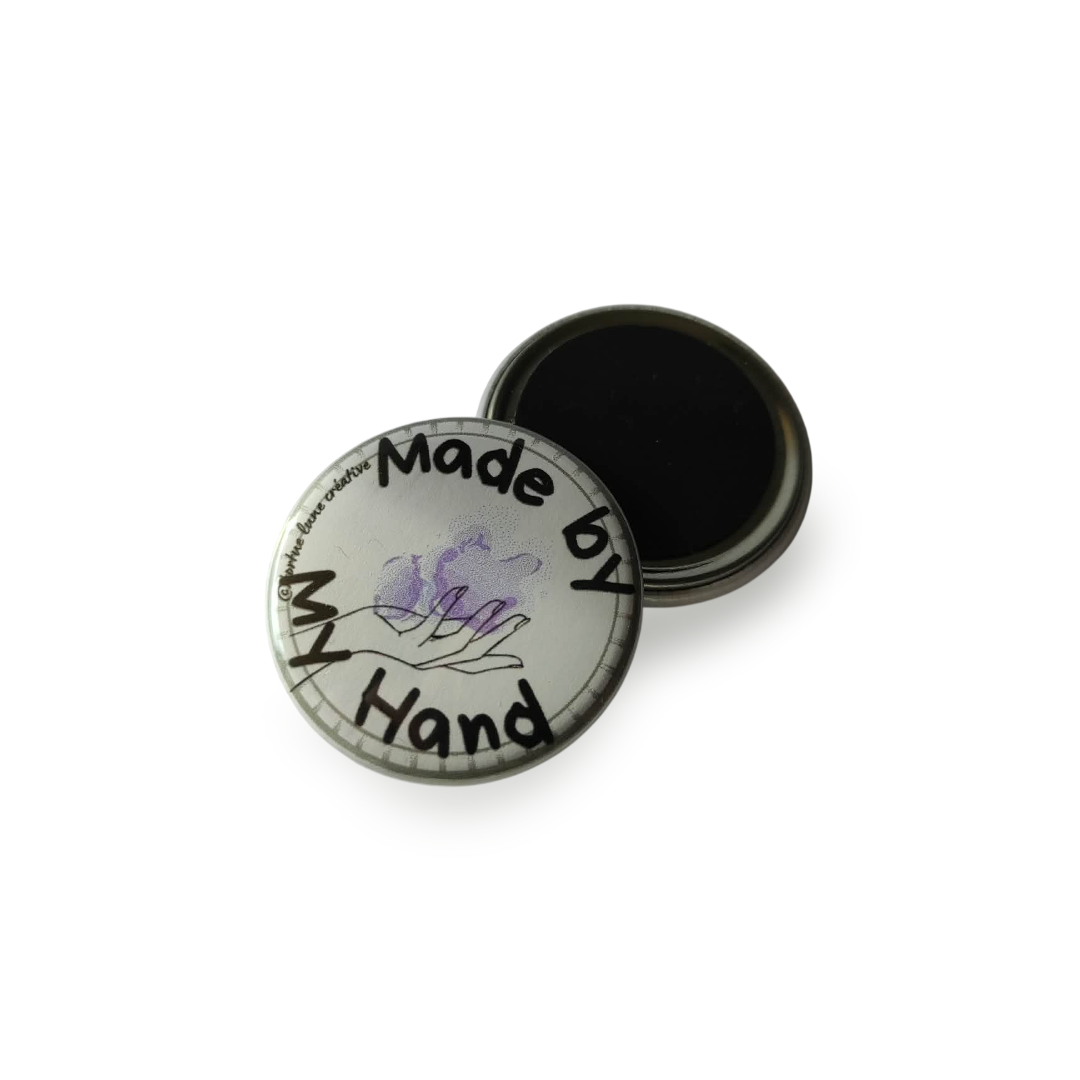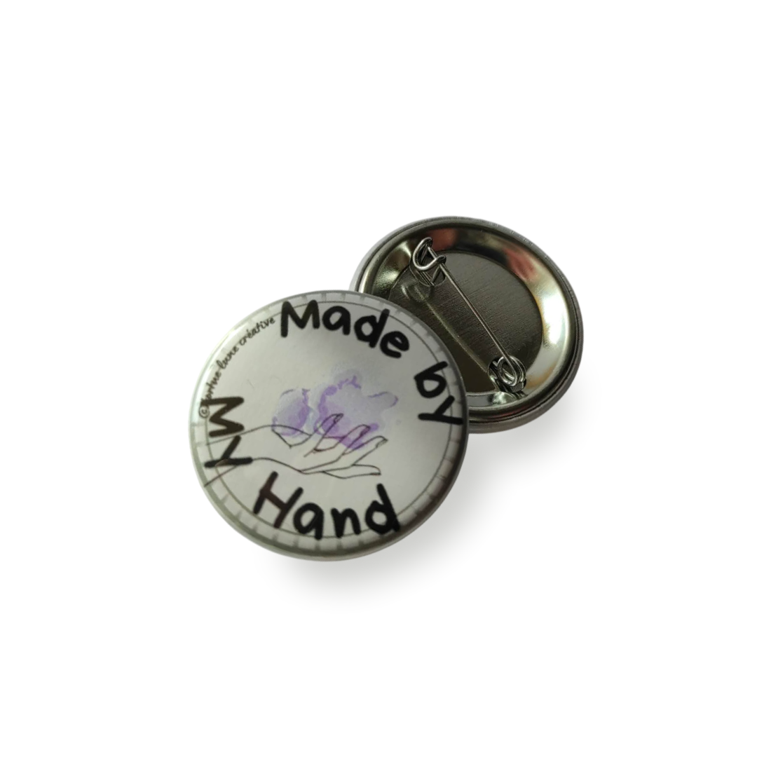 Badge à épingle ou aimant sur le thème de l' »IA » nommé : Made by my hand.